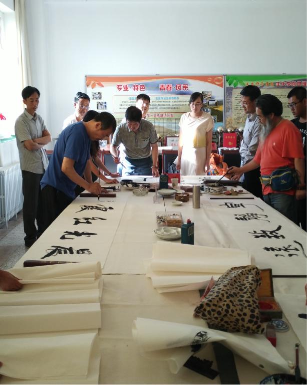 讲座结束后赵万顺先生、美术学院副院长杨皓教授、以及天水师范学院诗书画协会部分成员在人人摸人人操人人干会议室进行了书画笔会交流活动,在活动现场,为了弘扬我国悠久的历史文化,让更多学生得到艺术的熏陶,书画家们现场挥毫泼墨,以精湛的技艺尽展书画艺术魅力,并将现场创作的作品赠予参加活动的同学们。