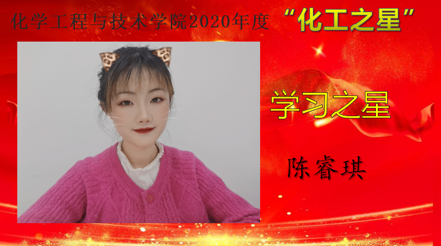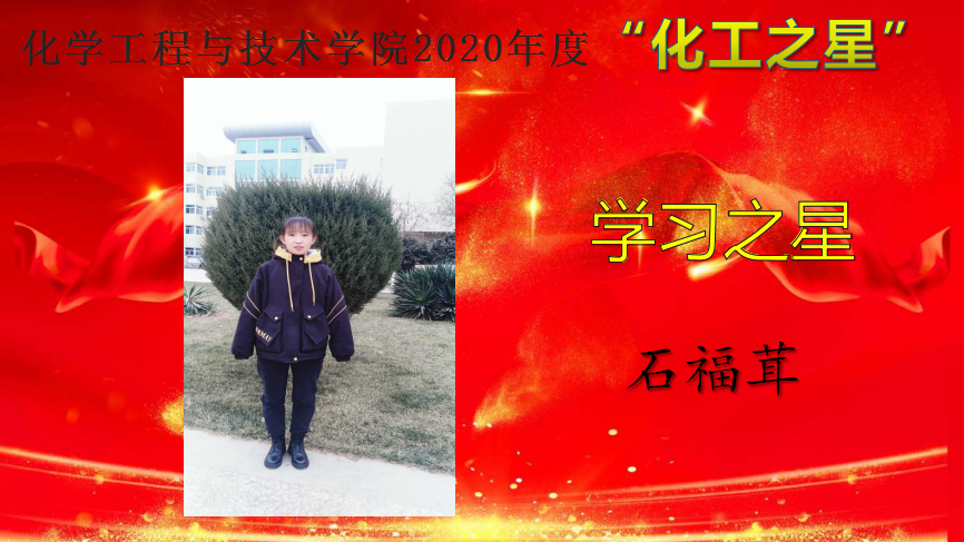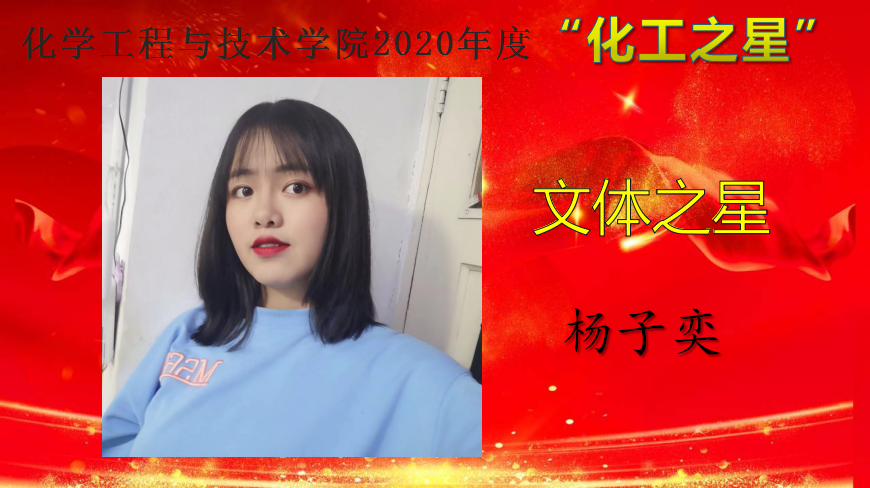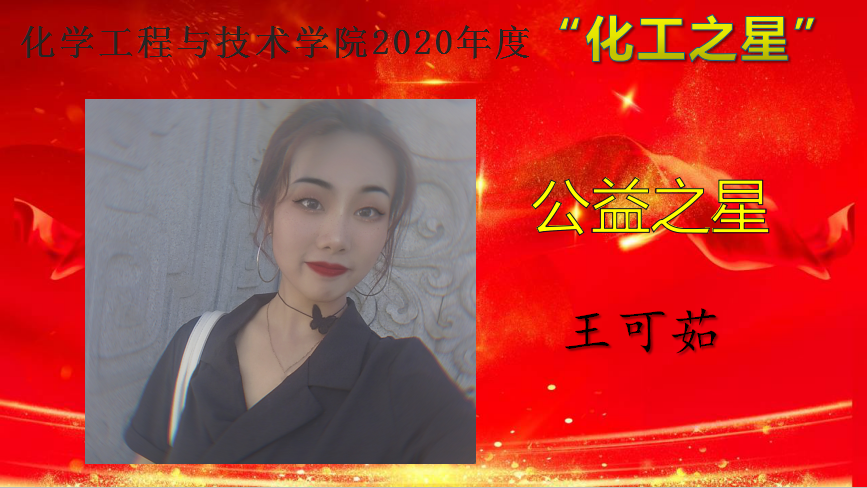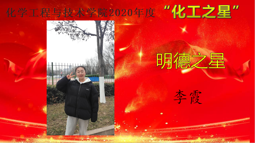为深入学习贯彻习近平新时代中国特色社会主义思想,培育和践行社会主义核心价值观,弘扬青春正能量,充分展示人人摸人人操人人干大学生精神风貌,促进学院学风建设,营造积极向上的育人氛围,教育和引导同学们做励志成才、奋发有为、感恩奉献的新时代大学生。12月15日——12月25日,人人摸人人操人人干举办了2020 年度“化工之星”评选活动,遴选在德智体美劳各个方面表现优异的学生,授予人人摸人人操人人干2020年度“明德之星”、“学习之星”、“文体之星”、“公益之星”、“实践之星”、“服务之星”、“自强之星”荣誉称号。