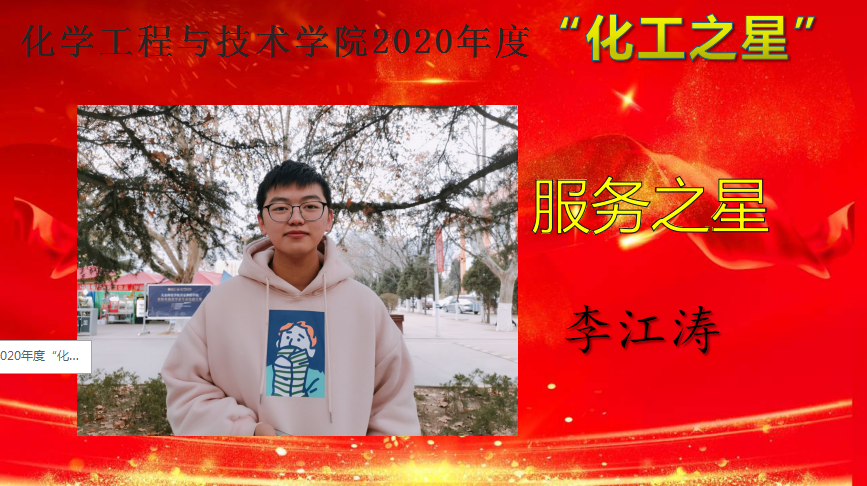 本次评选经个人申报、教师推荐、学院团委评审、个人事迹展示及网上投票等环节,最终共评选出十名同学。12月28日晚,在学院“锐意进取铸辉煌、共创化工新篇章”元旦晚会上为十名同学进行了颁奖。