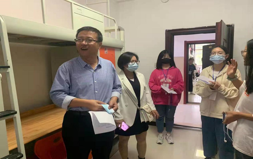 9月13日晚,学校党委常委、副校长王旭林和班子成员深入我院2021级新生宿舍进行走访慰问,全体辅导员和2021级班主任参加。