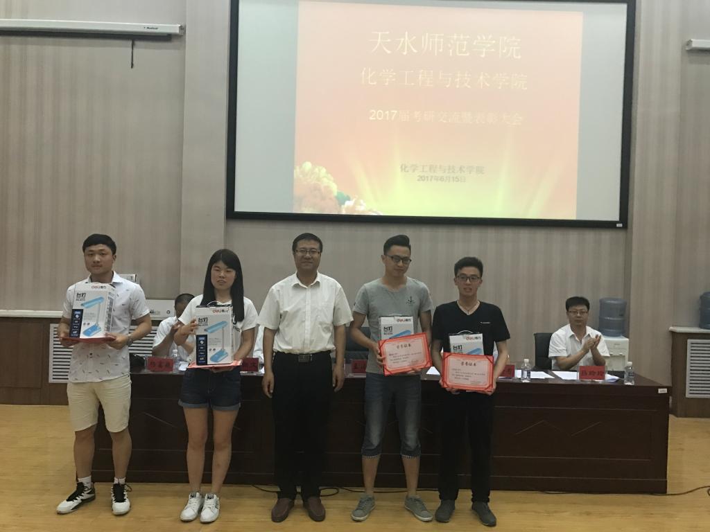 6月15日晚8时,化工学院2017届考研交流暨表彰大会在四号报告厅隆重举行。大会由化工学院党委副书记雷新有主持,学院党总支书记王小芳、院长刘新文、副院长杨富魏、吕玲玲,辅导员以及13、14级班主任和14级部分学生约200余人参加了此次会议。