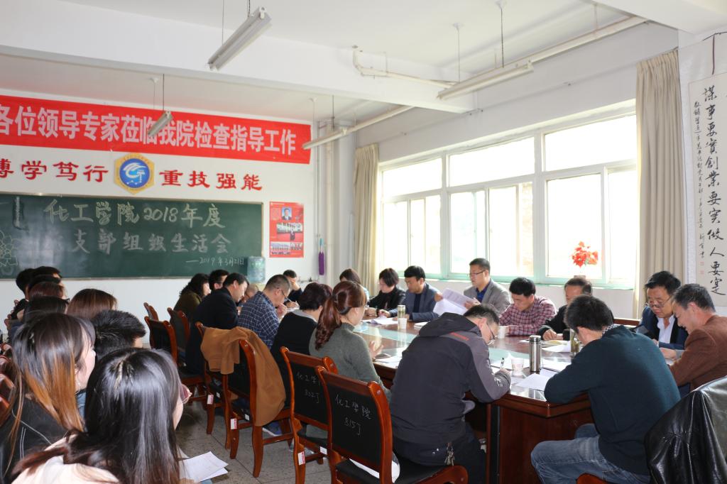 根据校党委《关于召开2018年度党支部组织生活会和开展民主评议党员的通知》(天师院党办发[2019]6号)要求,化工学院第一、二支部在前期充分准备的基础上,于3月21日下午3点,在学院会议室召开了2018年度专题组织生活会和民主评议党员大会,全院党员及预备党员约60余人参加了会议,学校招生就业处处长雒曲波,国际交流处处长姜炳生分别列席指导化工学院第一、二支部组织生活会。