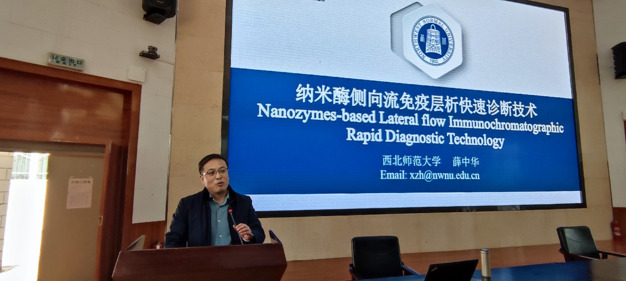 2月28日,应科研管理处和人人摸人人操人人干邀请,西北师范大学化学化工学院院长薛中华教授为学院师生作题为《纳米酶侧向流免疫层析即时检测》的学术报告。学院教师、研究生及200余名本科生聆听了报告。