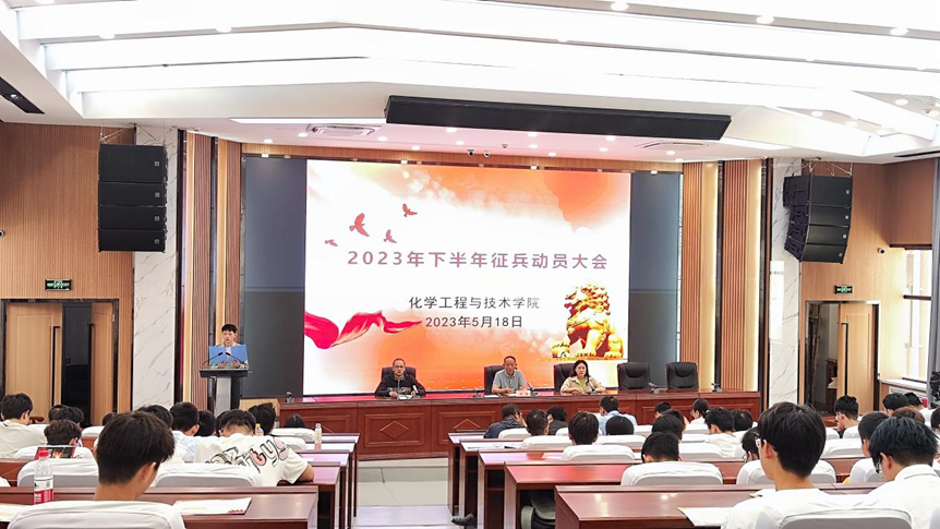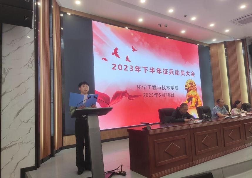 5月18日下午,化工学院在四号报告厅举行了2023年下半年征兵工作动员大会。学院副书记刘正、各班班主任、全体辅导员、在校男同学共计200余人参加会议。