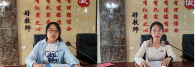 优秀实习生代表郭荣荣,王江玲,杜燕燕和侯静文先后发言,都表达了对武山县第二,第三高级中学领导和指导教师由衷的感谢,讲述了他们在实习期间的苦与甜,苦于自己在教学能力上的不足,甜于大家对她的鼓励与支持。他们均表示在一学期的实习中收获满满,教学能力与教学水平都有较大的提升,更加坚定了成为优秀教师的决心。