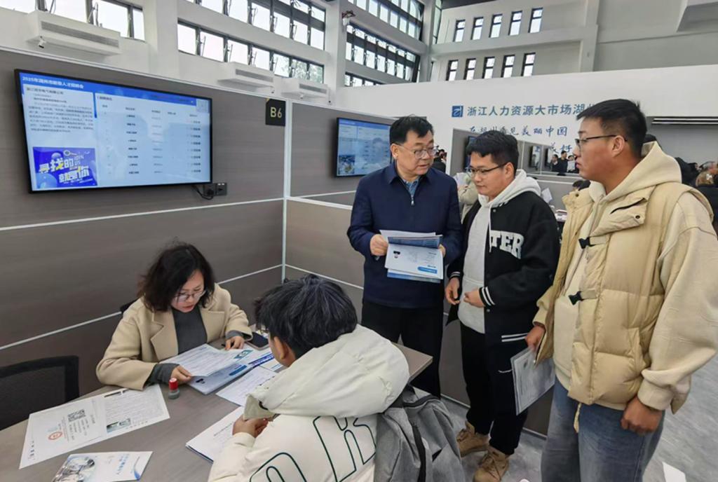 应浙江省湖州市人力资源和社会保障局邀请,近日,党委常委、副校长汪咏国带队参加了湖州2025年新春人才招聘会,并开展长三角地区访企拓岗活动,机电与汽车工程学院、电子信息与电气工程学院、外国语学院、化工工程与技术学院相关负责人及学生代表10余人参加。