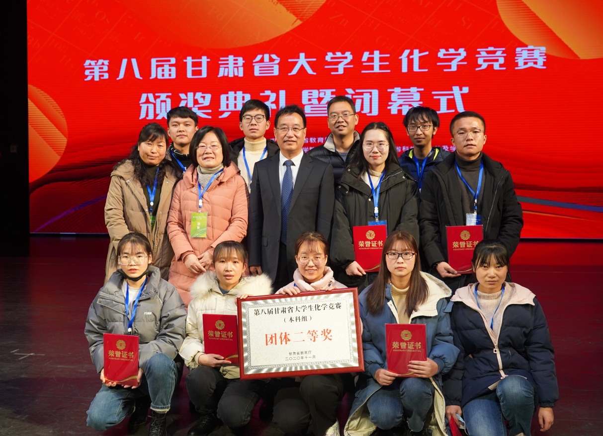 28日上午,第八届甘肃省大学生化学竞赛开幕式在河西讲堂举行。开幕式结束后,参赛学生进行了理论知识竞赛和实验技能竞赛。经过紧张激烈的角逐,我校代表队在比赛中发挥出色,获得本科组团体二等奖,黄祺雯、石福茸同学获得本科组一等奖,丁东林同学获得二等奖,杨帅、郑磊、高夏红、曹翻平、杨嘉诚、陈霞、刘继荣同学获得三等奖,参赛学生全部获奖。